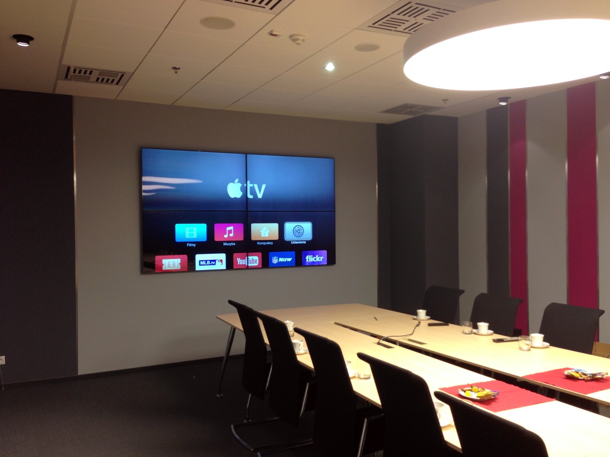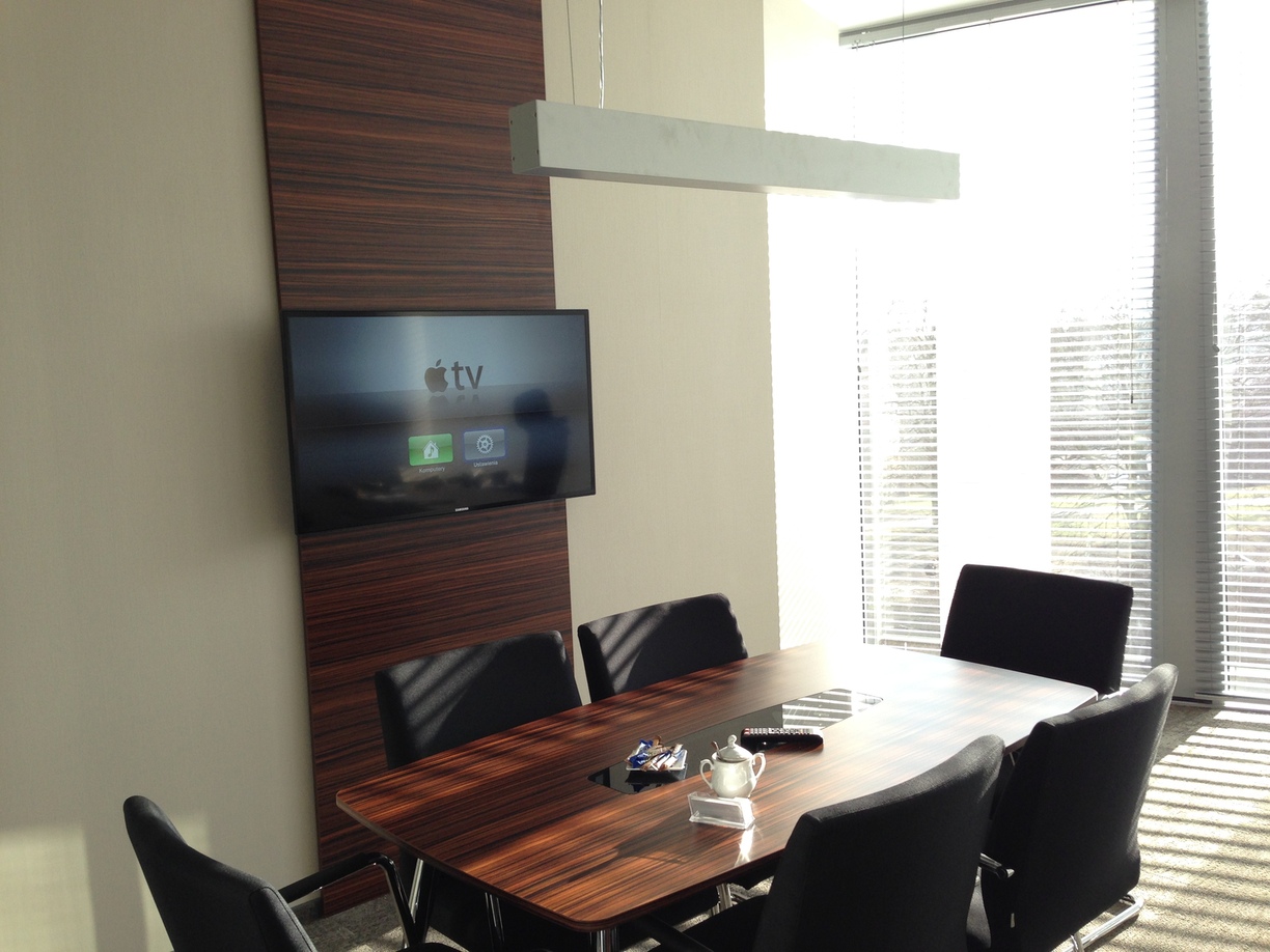 - Wyposażenie biur, sekretariatów i salek spotkań w sprzęt multimedialny, w tym urządzenia AppleTV do bezprzewodowego strumieniowania multimediów i prezentacji na telewizory LCD.